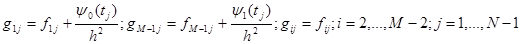 В уравнениях (8) перенесем из левых частей в правые части члены, содержащие граничные значения. После такого преобразования уравнения (8), (9) примут следующий вид