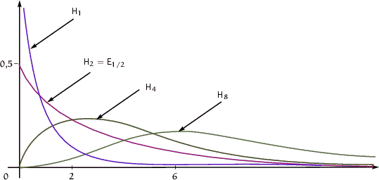 | Вид плотности -распределения в зависимости от числа степеней свободы