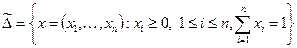 Вектор x = (x 1, ¼, xn) будем называть смешанной стратегией первого игрока, понимая под этим следующее: в соответствии с этой стратегией первый игрок с вероятностью xi выбирает чистую стратегию d i Î D. Аналогично интерпретируется смешанная стратегия y = (y 1, ¼, ym) для второго игрока.