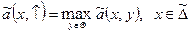 Видно, что ã (x,) – максимальные потери, которые понесет первый игрок, если он будет следовать стратегии x; ã (¯, y) –минимальные потери, которые он понесет, если второй игрок выберет стратегию y.