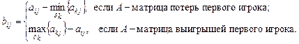 Матрица В интерпретируется как матрица сожаления первого игрока по поводу того, что он не выбрал наилучшей стратегии.