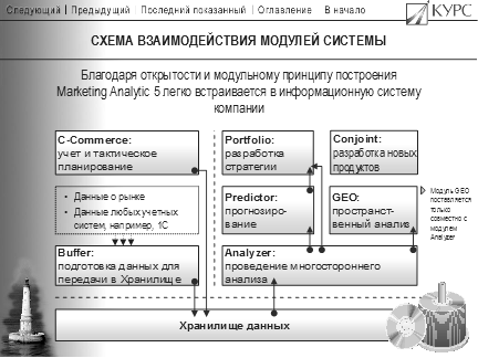 На основе модуля Analyzer строится автоматизированная система расчета показателей маркетинговой деятельности предприятия, а также показателей смежных видов деятельности (логистики, финансов).