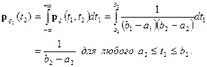 Пример 2. Пусть плотность распределения случайного вектора x = (x 1, x 2) постоянна в области D ={ a 1£ t 1£ b 1, a 2£ t 2£ b 2}, т.е.