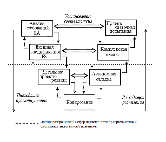 · Это дискретный (во времени) технологический процесс с остановками по завершении каждого этапа и возможностью контроля и повторения этапа при неудовлетворительных результатах (т.е., итераций разработки)