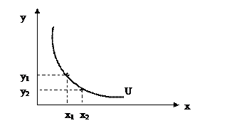 Кривая безразличия – это совокупность точек, каждая из которых представляет собой набор из двух товаров, причем потребителю безразлично какой из них выбрать поскольку данные наборы имеют для потребителя одинаковую полезность.