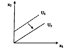 - антиблагом. Тогда кривые безразличия должны восходить вправо вверх, как показано на рисунке.