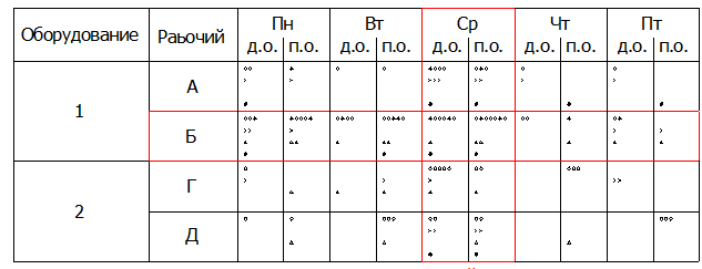 Другая система обозначений, широко применяемых при регистрации статистических данных в контрольных листках, приведена в таблице: