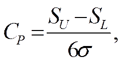 Индекс воспроизводимости CP определяется как отношение ширины поля допуска параметра к фактическому разбросу параметра процесса. Если заданы двухсторонние границы допуска,