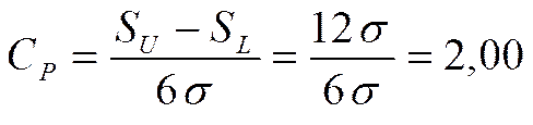 В этом случае индекс воспроизводимости CP , определяемый как отношение ширины поля допуска параметра к фактическому разбросу параметра процесса, см. формулу (6.1), равен