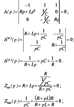 б) составить комплексное входное сопротивление цепи для источника синусоидальной э.д.с., включенное в любой ветви цепи, заменить jw на p и приравнять нулю.