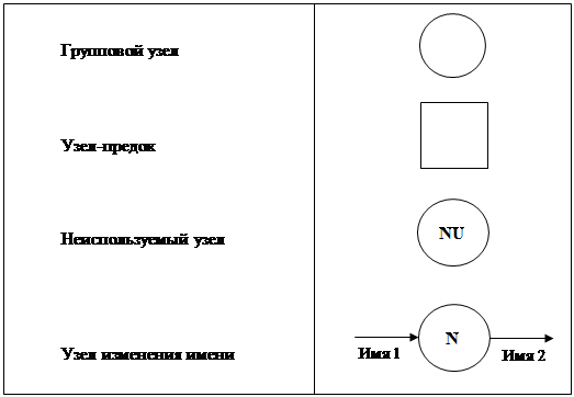 4) УЗЕЛ ИЗМЕНЕНИЯ ИМЕНИ. Позволяет неоднозначно именовать потоки, при этом их содержимое эквивалентно. Например, если при проектировании разных частей системы один и тот же фрагмент данных получил различные имена, то эквивалентность соответствующих потоков данных обеспечивается узлом изменения имени. При этом один из потоков