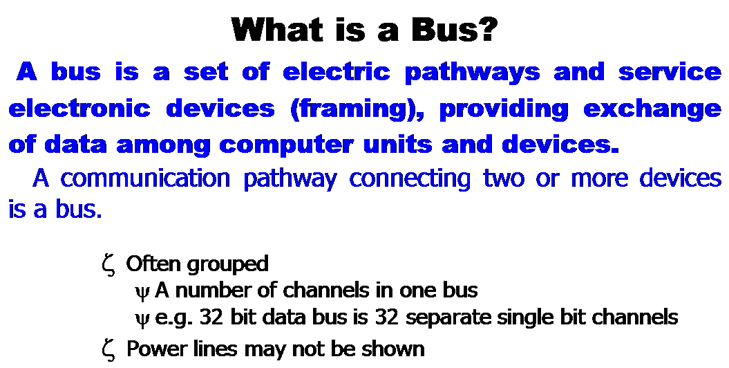 A system bus consists, typically, of from 50 to 100 separate lines, which can be classified into three functional groups: data, address and control lines (power lines are usually omitted).