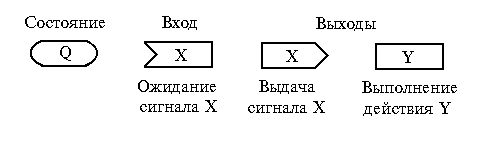 Язык SDL (Specification and Description Language) был разработан первоначально для проектирования цифровых систем в телефонии (в частности, цифровых АТС). Он основан на модели расширенных конечных автоматов и имеет как графическую, так и эквивалентную ей текстовую нотацию. Описание процесса в виде диаграммы состояний и переходов составляется из четырех базовых элементов: