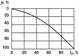 Опорную длину профиля определяют на уровне сечения профиля р, то есть на заданном расстоянии между линией выступов профиля и линией, пересекающей профиль эквидистантно линии выступов профиля, и строят кривую изменения опорной длины профили (рис. 2). Значение уровня сечения профиля p отсчитывают по линии выступов и выбирают из ряда: 5; 10; 15; 20; 25; 30; 40; 50; 60; 70; 80; 90% от Rmax.