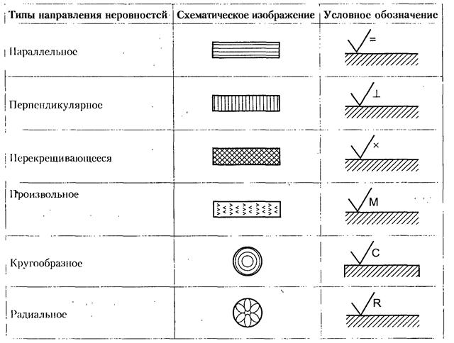 Таблица 1.Направления неровностей поверхности по ГОСТ 2789-73