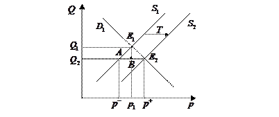 Рисунок 1.2.5 ‑ Рыночное равновесие при уплате акцизного налога продавцами