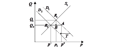 Рисунок 1.2.6 ‑ Рыночное равновесие при уплате акцизного налога покупателями