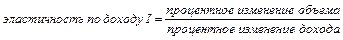 1.2.27 Эластичность спроса по доходу – мера чувствительности спроса к изменению дохода; отражает относительное изменение спроса на какое-либо благо вследствие изменения дохода потребителя: