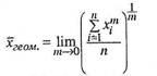 Если m =2, то получаем среднюю квадратическую; если m= 1, то приходим к средней арифметической; при m=0 получаем среднюю геометрическую; при т= -1 имеем среднюю гармоническую.