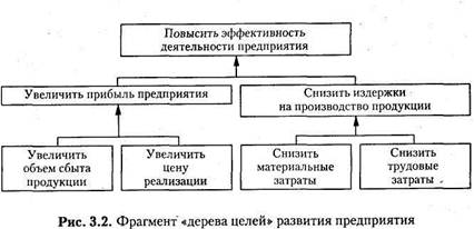Определение целей базируется на применении системного анализа. Цели отдельных подразделений не должны противоречить общим целям предприятия. Главным методом разработки долгосрочных и краткосрочных целей может стать «дерево целей» развития предприятия (рис. 3.2).