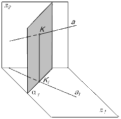 Прямая, пересекающаяся с проецирующей плоскостью и перпендикулярная к ней, всегда параллельна той плоскости, к которой проецирующая плоскость перпендикулярна.
