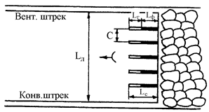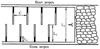 Рис.4.8. Схема расположения разгрузочных скважин в очистном забое