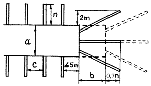 Длина разгрузочных скважин в боках выработки принимается равной ширине защитной зоны n в краевой части пласта (см.рис.4.4). Впереди подготовительного забоя длина скважин составляет