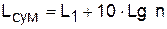 , то суммарный уровень шума можно определить как: