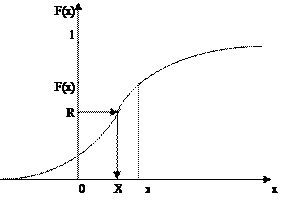 Докажем следующее утверждение: если взять на оси ординат случайное число R (от 0 до 1) и найти то значение Х, при котором F(x)=R, то полученная случайная величина Х будет иметь функцию распределения F(x).