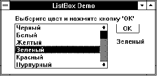 Приложение LISTBOX (рис.) создает простейший одноколоночный список.