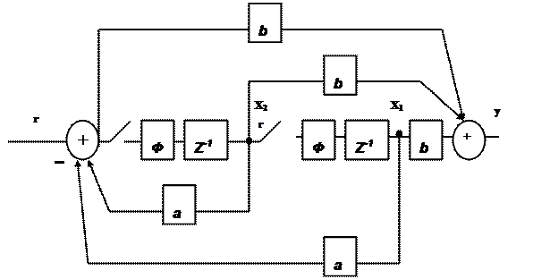 3). Метод последовательного программирования применяется если дискретная система представлена структурной схемой, состоящей из некоторых звеньев, каждое из которых может быть заменено СПС построенных методом прямого либо параллельного программирования.