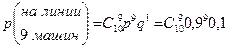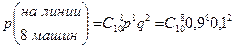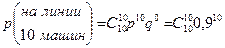 - вероятность выхода одной машины на линию, а