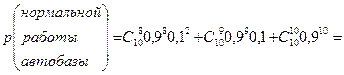 Решение. Прежде всего поймём, что значит вероятность нормальной работы автобазы: