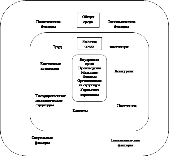 Среду любой организации можно определить как совокупность трех сфер - внутренней среды, рабочей среды, общей среды.