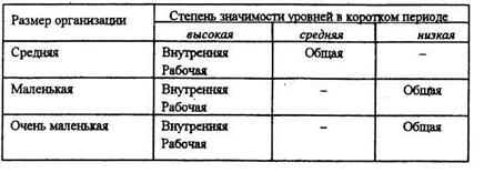 | Размер организации | Степень значимости уровней в коротком периоде | ||