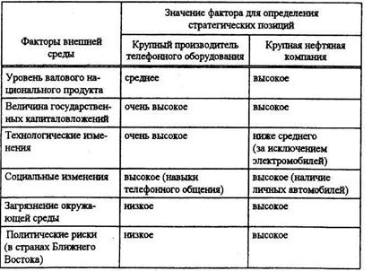 Характер деятельности фирмы также в большей степени влияет на оценку факторов среды и выбор критических точек. В таблице 3 показано, как реагируют две крупные фирмы различного профиля на одни и те же факторы внешней среды.