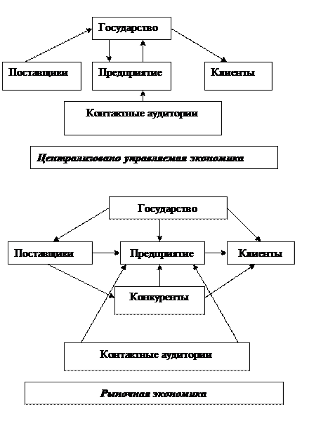 Как видно из схемы, рабочая среда рыночной экономики гораздо сложнее и требует от предприятия больших усилий по ее анализу.
