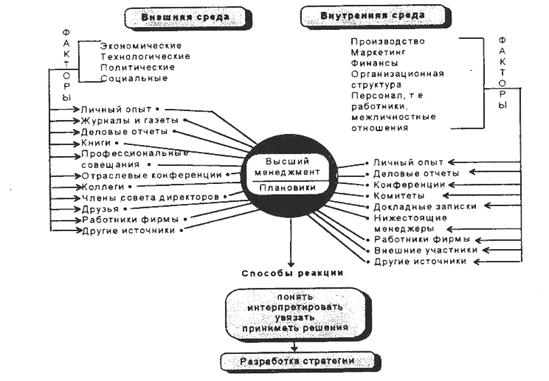 Сбором нужной информации обычно занимается служба планирования. В то же время этот процесс-координируется и контролируется высшим менеджментом. Высший менеджмент, кроме того, самостоятельно занимается сбором информации, так как обладает возможностью вхождения в различные информационные каналы.