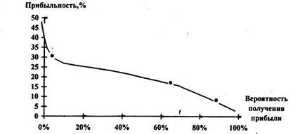 Устанавливая планку будущей прибыли, нужно иметь в виду, что величина прибыли и вероятность ее получения находятся в обратной зависимости, что показывает кривая "результат- риск" (рис. 11).