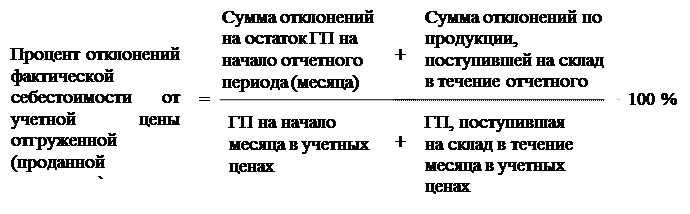 В конце месяца после определения фактической себестоимости выпущенной готовой продукции необходимо определить расчетным путем сумму отклонений фактической себестоимости от учетной цены по формуле: