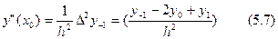 На практике удобнее дифференцировать не односторонние формулы (1,2 формулы Ньютона), а центральные (формулу Стирлинга), так как узлы интерполяции располагаются симметрично относительно начальной точки x0. Возьмём в формуле Стирлинга первые три слагаемых (интерполяция по трём точкам x-1,x0,x1), получим: