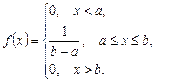 Определение 9. Равномерный закон распределения непрерывной случайной величины задается функцией плотности распределения вида: