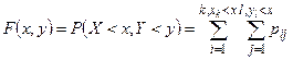Замечание 2. В случае дискретной двумерной случайной величины её функция распределения определяется по формуле