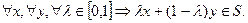 Множество S называется выпуклым, если для любых двух точек этого множества оно содержит и отрезок, соединяющий эти точки: