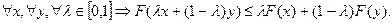Функция F(x), определенная на выпуклом множестве S, выпукла, если ее график целиком лежит ниже (не выше) отрезка, соединяющего любые две точки графика: