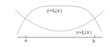 Очевидно, что площадь области между кривыми равна разности площадей соответствующих криволинейных трапеций, поэтому
