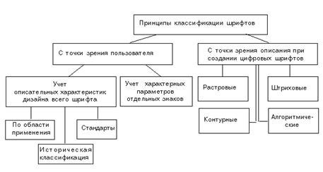 В связи с внедрением вычислительной техники в процессы обработки информации появились новые возможности шрифтового оформления продукции. Средствами электронных преобразований легко получить из обычного шрифта непосредственно в процессе набора целый ассортимент его разновидностей: контурные, оттененные, заполненные орнаментом, деформированные и др. Кроме этого, появились специальные программы — шрифтовые редакторы для создания новых и редактирования существующих шрифтов. Появились и новые принципы классификации шрифтов, созданных электронным способом и существующих в памяти устройств в дискретной форме.