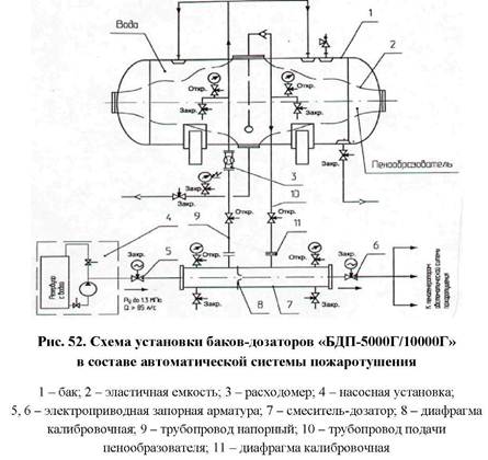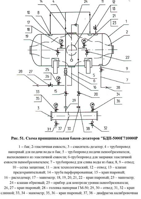 После диффузора поз. 7 поток низкократной пены поступает в пенопровод автоматической системы подслойного тушения пожаров в резервуарах с нефтью.