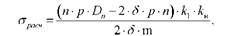 и внутреннего рабочего давления в трубопроводе; DH - наружный диаметр трубопровода, мм; р - давление в системе маслоснабжения, МПа;