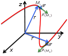 Силовой линией называю кривую, касательная к которой в любой точке совпадает по направлению с вектором, являющимся элементом векторного поля в этой точке. Из этого определения непосредственно вытекает уравнение с помощью которого можно найти форму силовых линий. Рассмотрим произвольное векторное поле